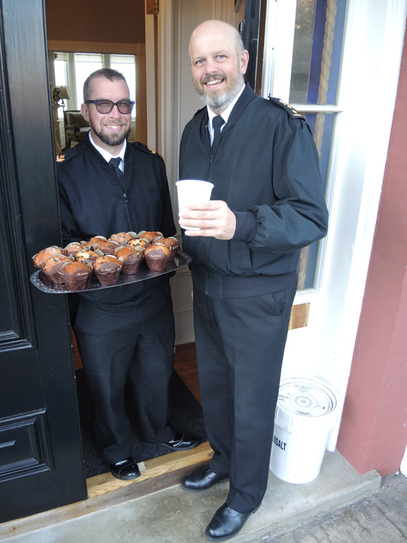 Above: Commander MARPAC, Rear-Admiral Christopher Robinson and his Steward Master Sailor Cory McMillan welcome visitors to the Admiral’s Residence for Morning Coffee with the Admiral.