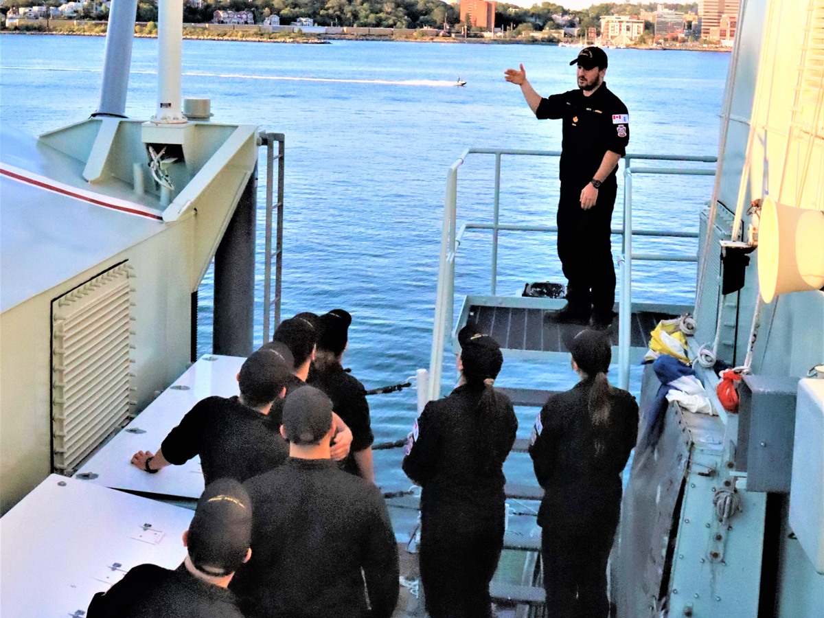A unique training opportunity unfolded for seven students from the Naval Communicator (NAV COMM) Rank Qualification Sailor Second Class (RQS2) course in Halifax. Naval Fleet School Atlantic trialed a hands-on learning experience early within the overall NAV COMM training sequence of studies for the first time this summer. Traditionally, practical training occurs only after students have completed their initial NAV COMM training and are posted to a ship.