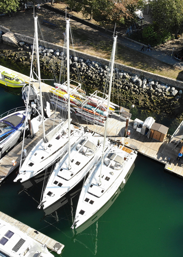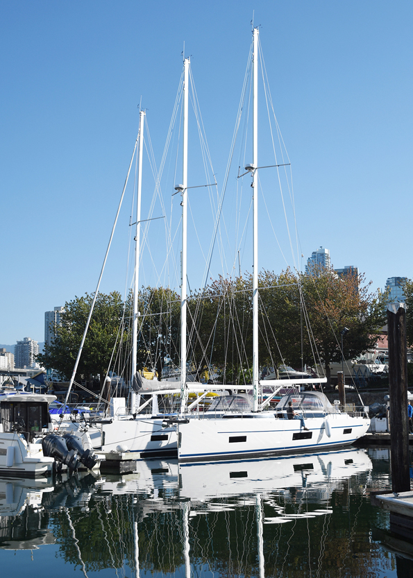 “Nous savions depuis un certain temps que les nouveaux bateaux allaient arriver, mais maintenant qu’ils sont gréés à Vancouver, ils ne sont plus seulement une idée : ils sont devenus quelque chose de tangible “, a déclaré le Lieutenant de vaisseau (Ltv) Ellery Down, responsable du programme de voile de la MRC. Ellery Down, coordonnateur du programme de voile de la MRC, lors d’une récente inspection des deux voiliers Bavaria C45, qui n’ont pas encore été baptisés, dans les locaux d’un entrepreneur sur l’île Granville.