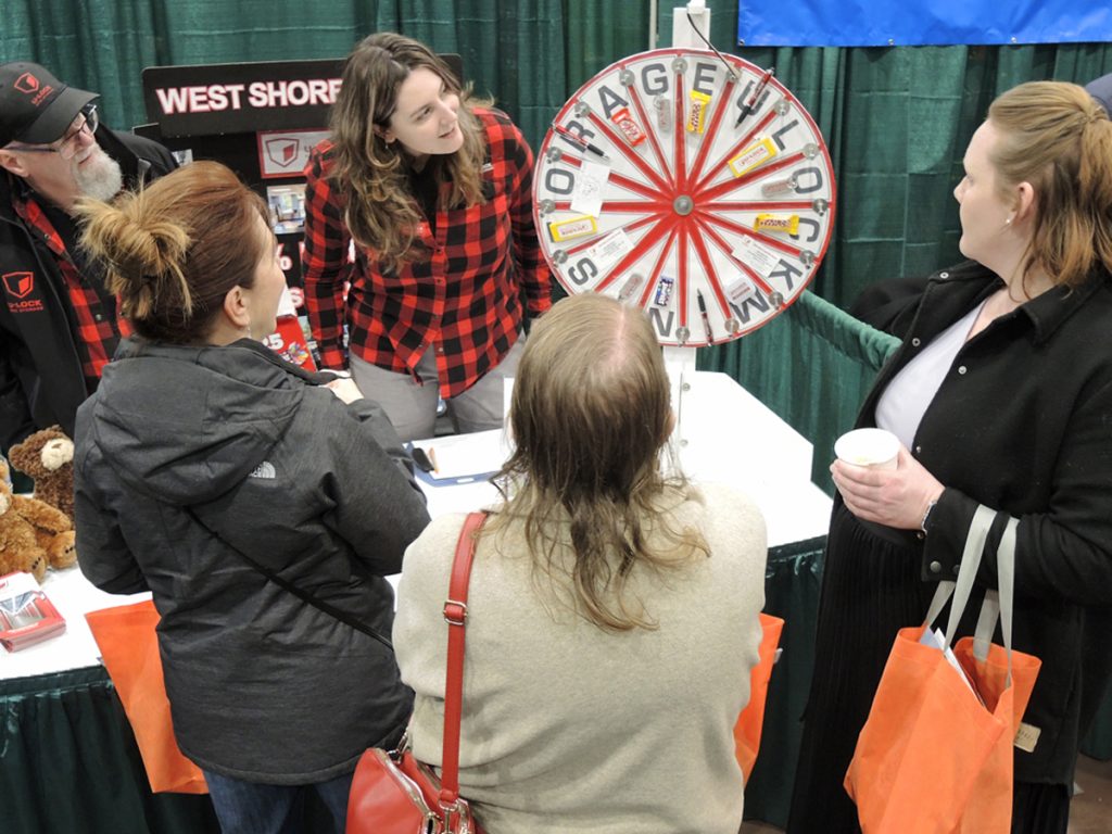Les visiteurs du stand de West Shore U-Lock Mini Storage font tourner la roue de