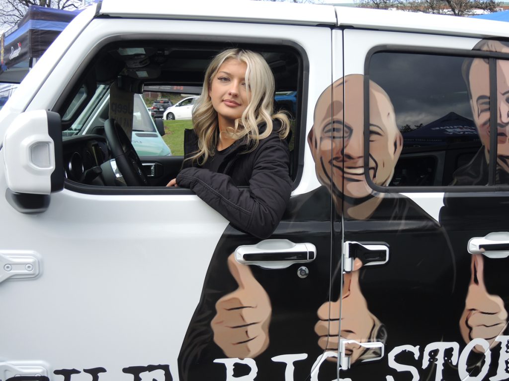Anastasia MacMillan, responsable de l’inventaire chez Harris Victoria Dodge, montre une Jeep de la salle d’exposition.
