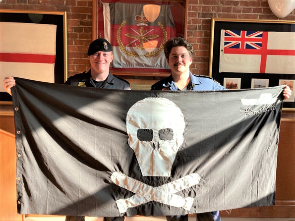 Sailor First Class (S1) Zack Davison and S1 Mack Crouch of CANSUBFOR display the Jolly Roger that was flown during RIMAPC 2012 from HMCS Victoria. Photo credit: DND