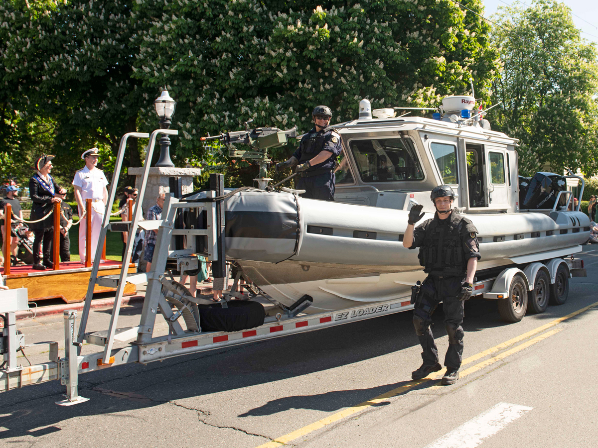 Members of the Naval Tactical Operations Group rode aboard their unit’s own float, and the Naden Band participated in this year’s parade as well. The Office of the Base Commander and the Personnel Coordination Centre helped coordinate the military component and support for this year’s parade.